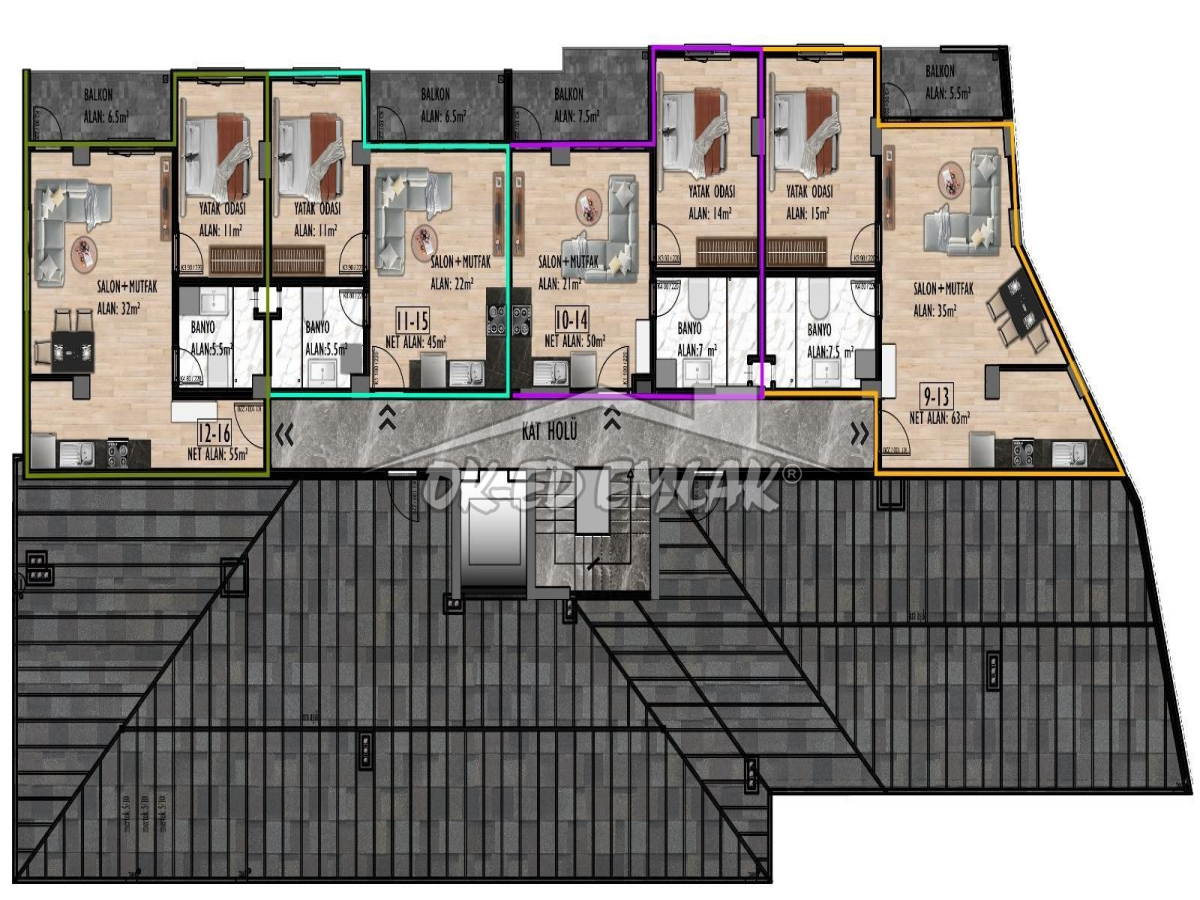Brüt Alan: 65 m²